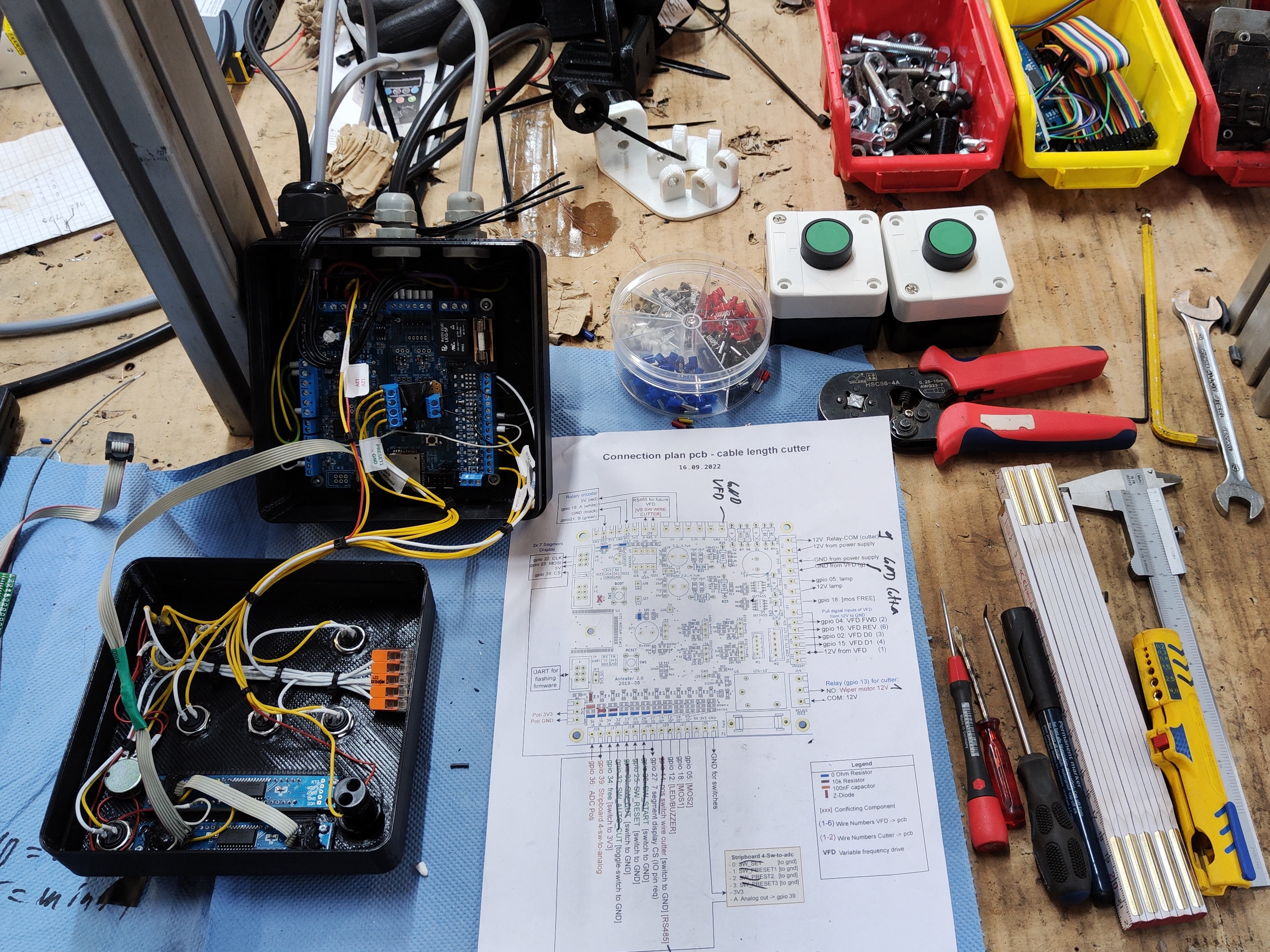 The wiring was straightforward using the beforehand created connection plan.