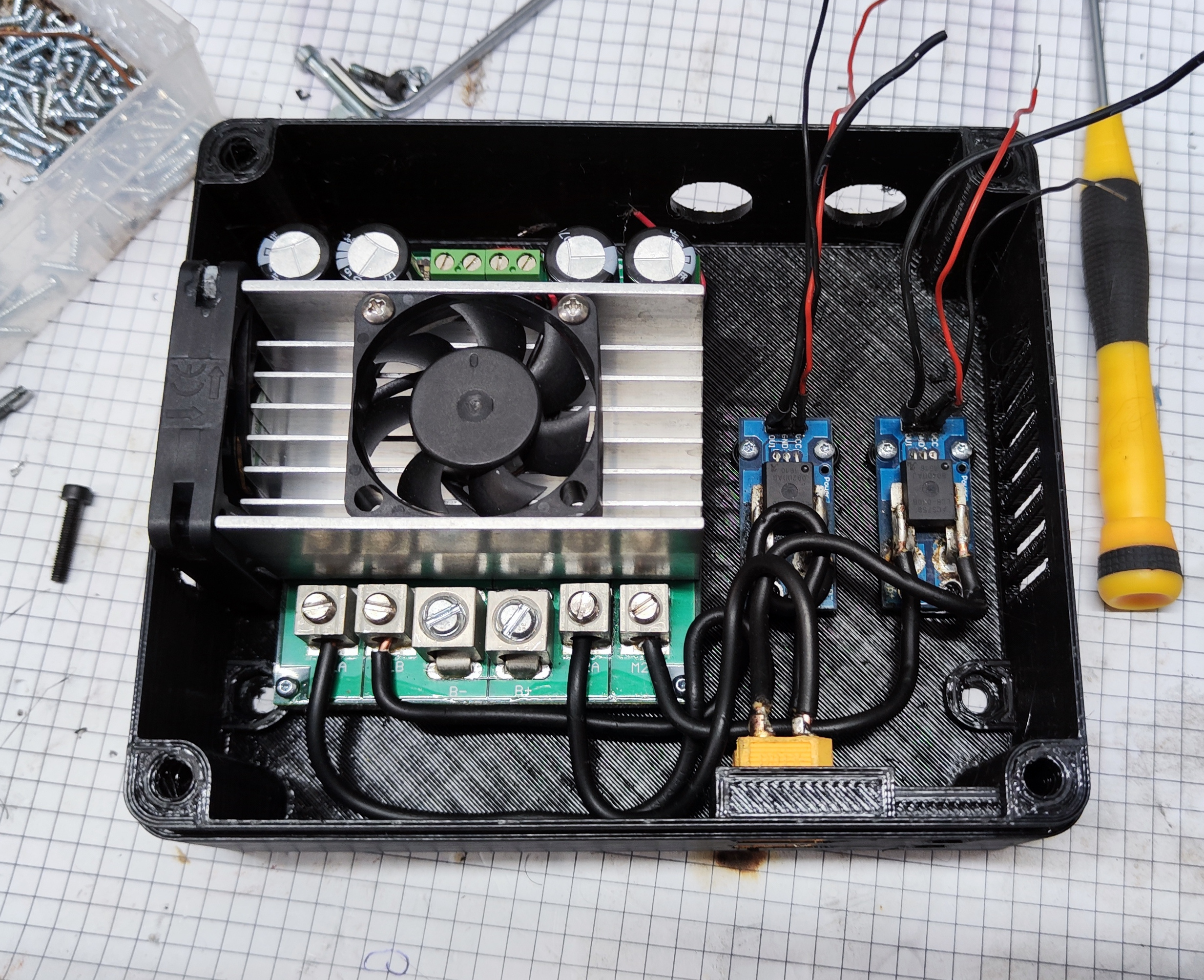 Initially, the inexpensive motor drivers from the previous armchair design were used: HC240A-PWM rated for 8-30 V and 30 A.