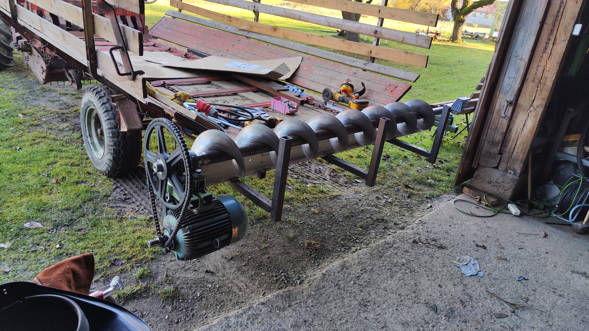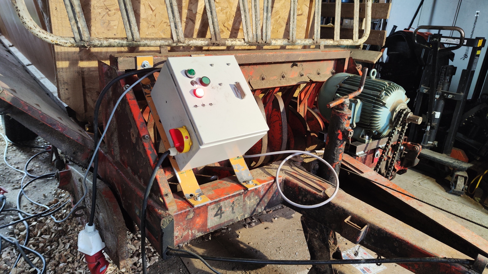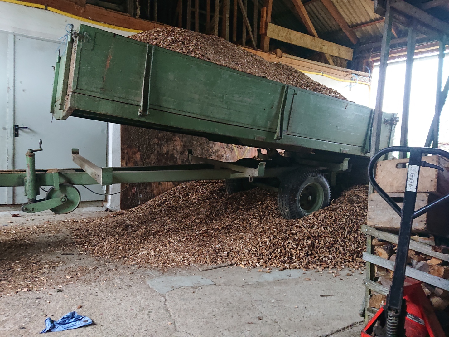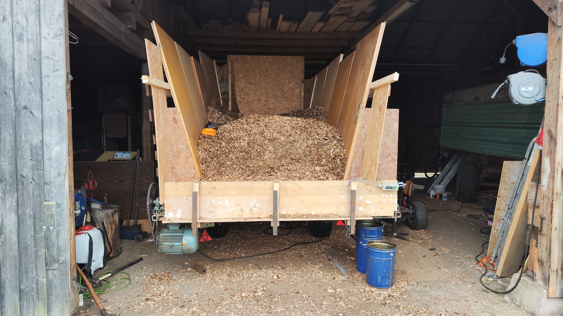 Retrofitting an old loader wagon so it fills buckets with wood-chips at the press of a button.