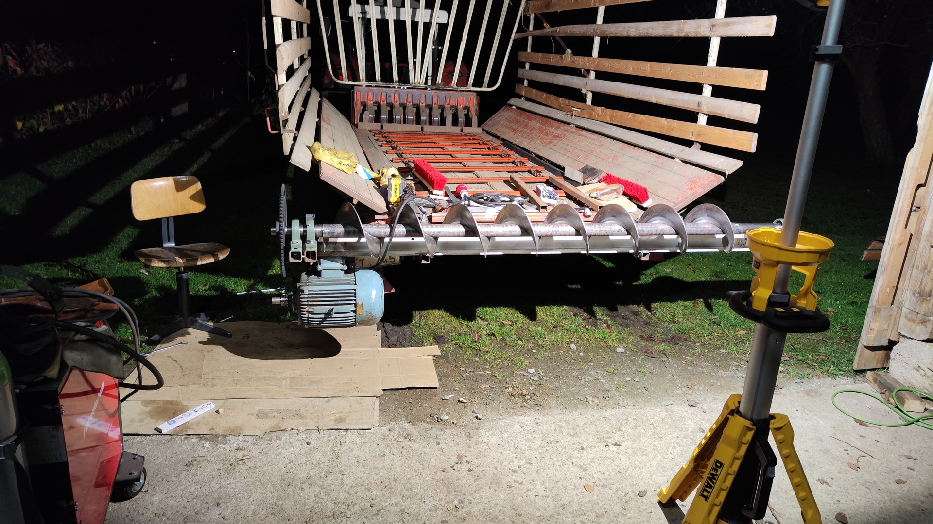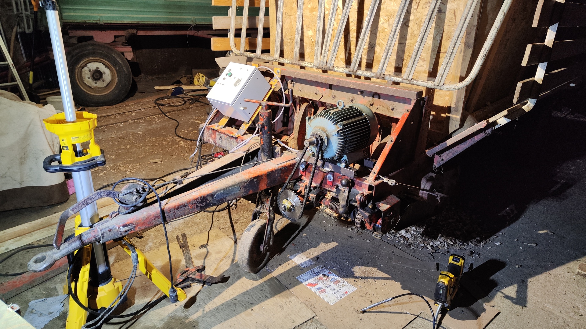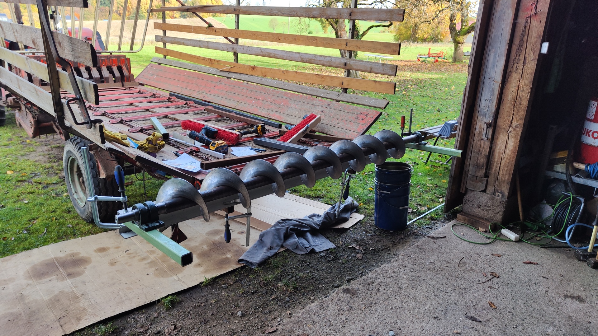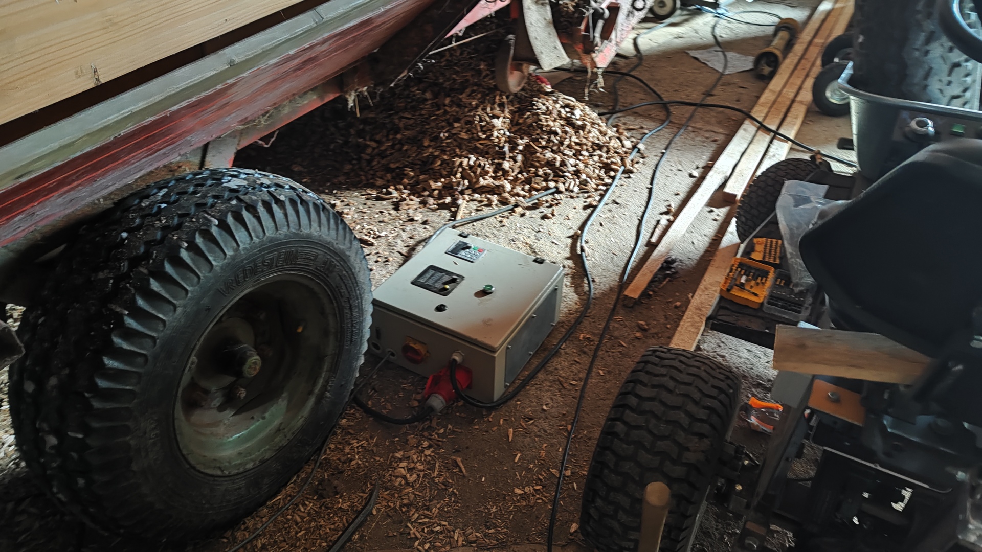 Retrofitting an old loader wagon so it fills buckets with wood-chips at the press of a button.