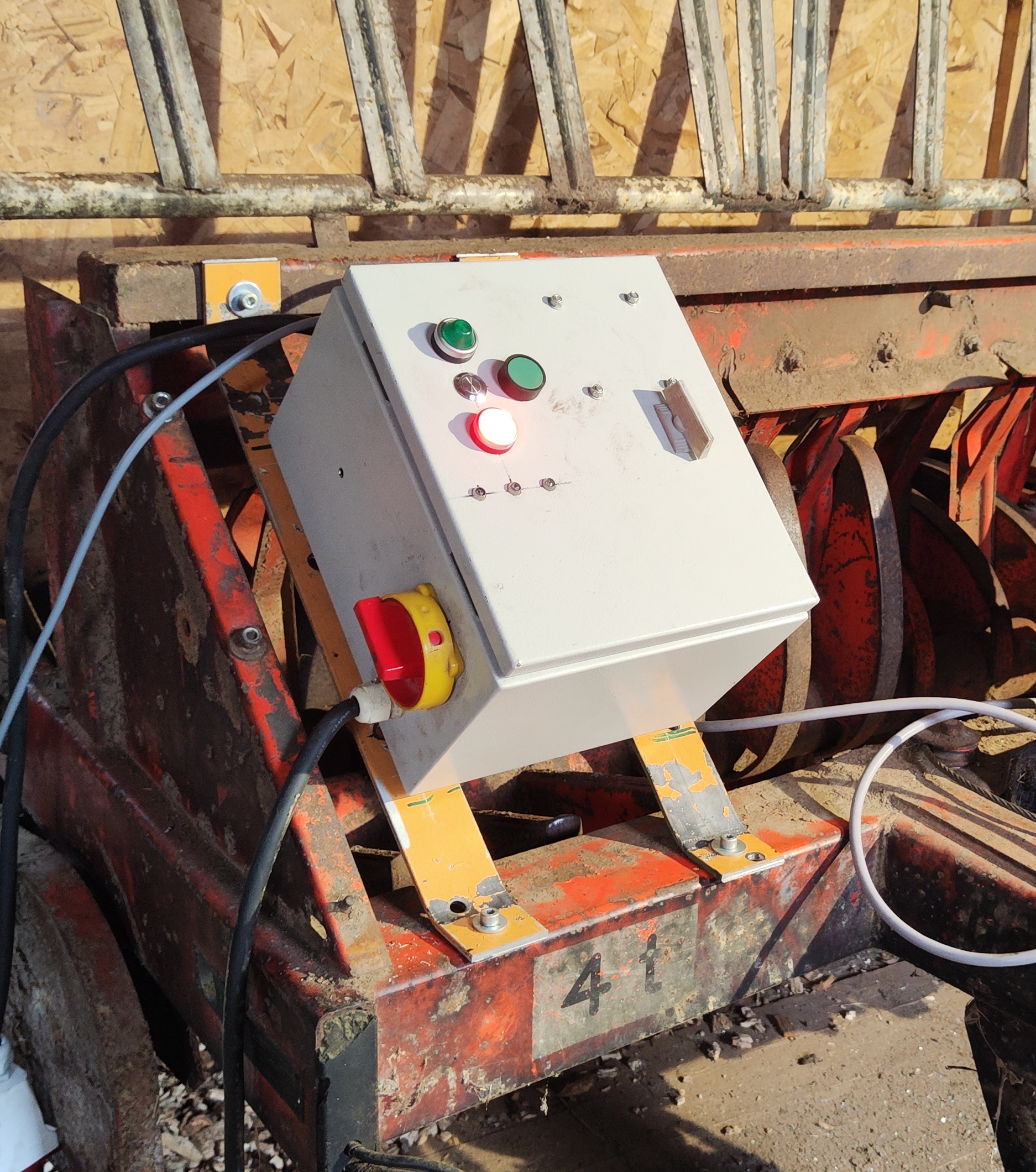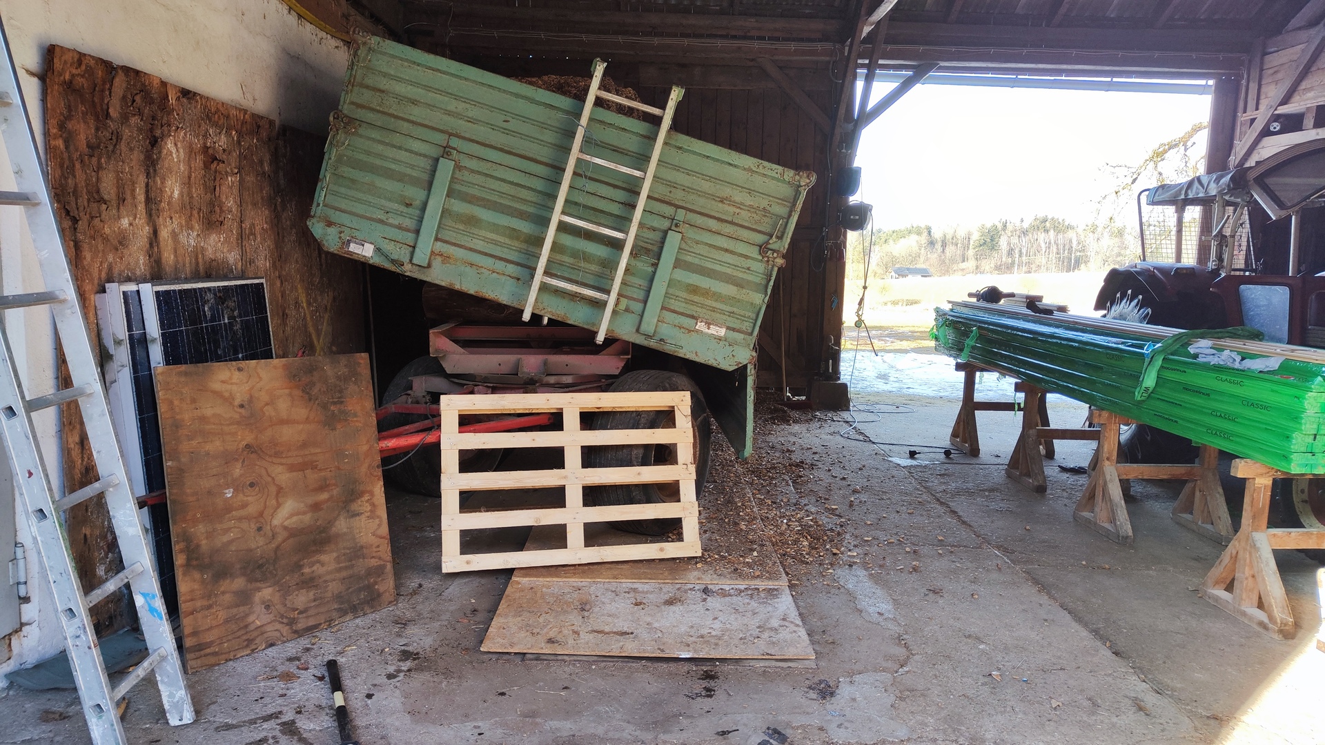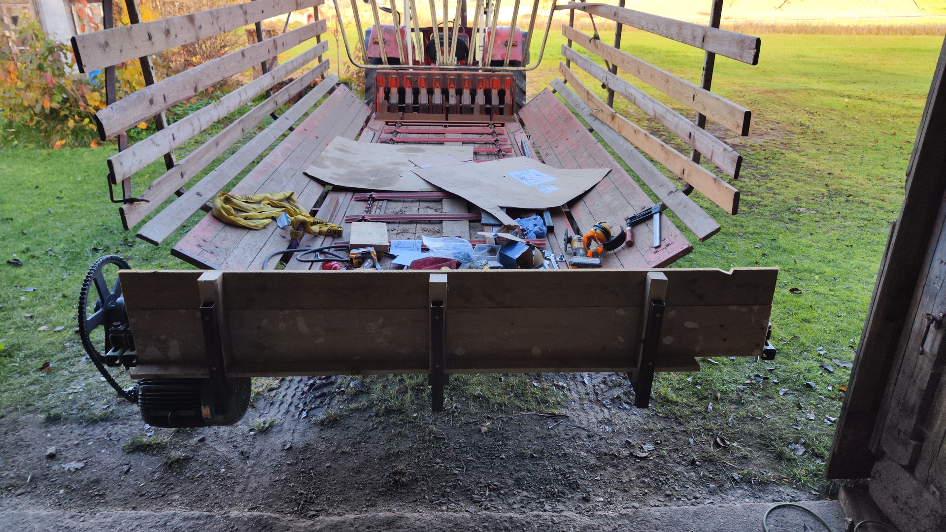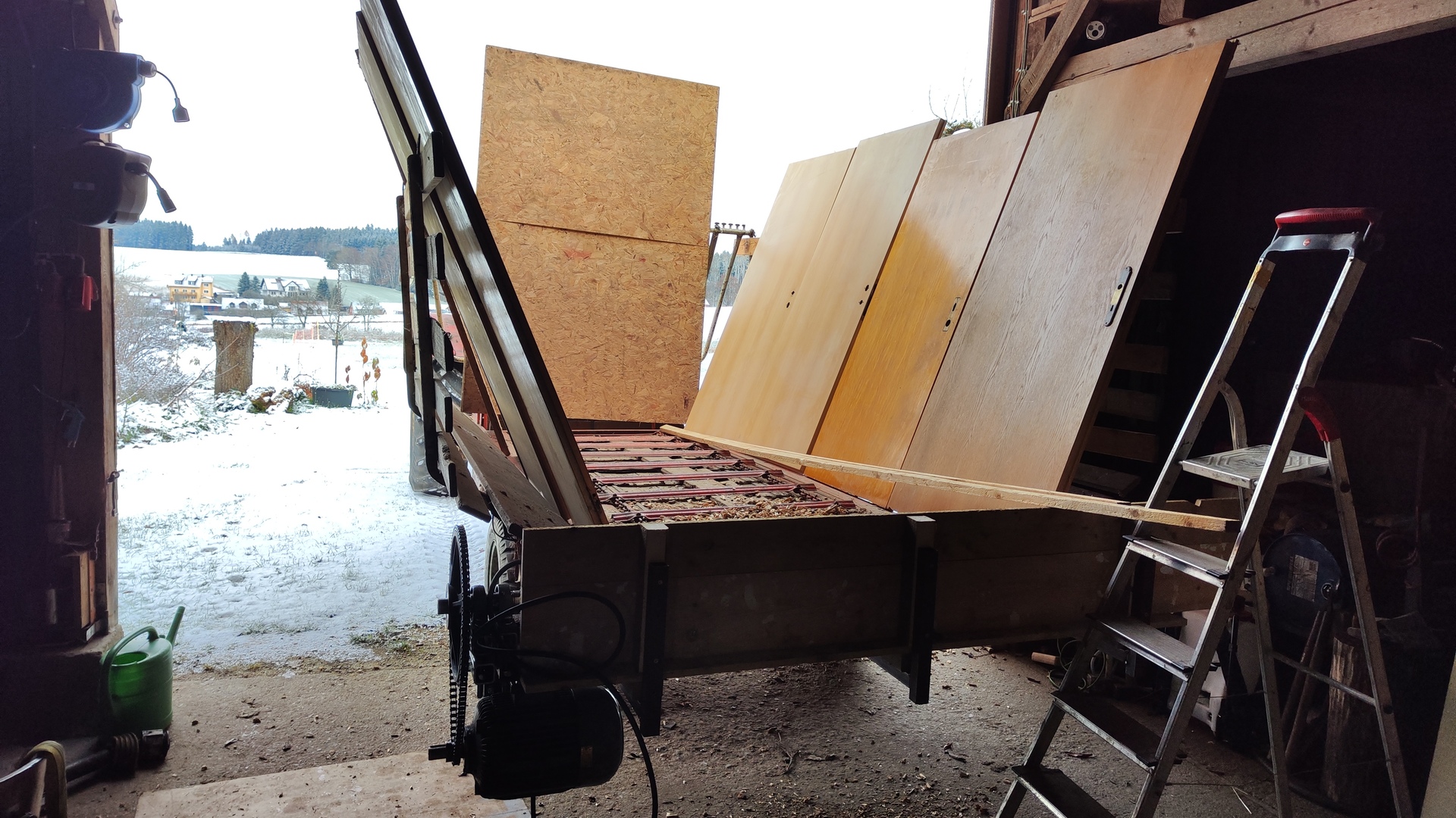 Retrofitting an old loader wagon so it fills buckets with wood-chips at the press of a button.