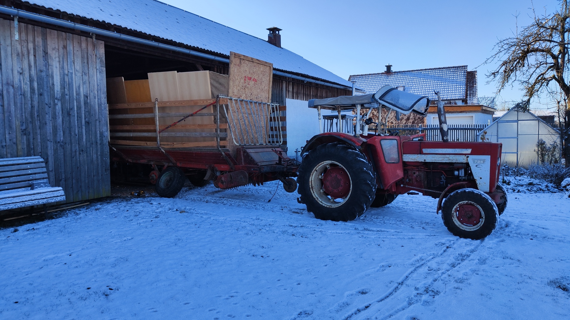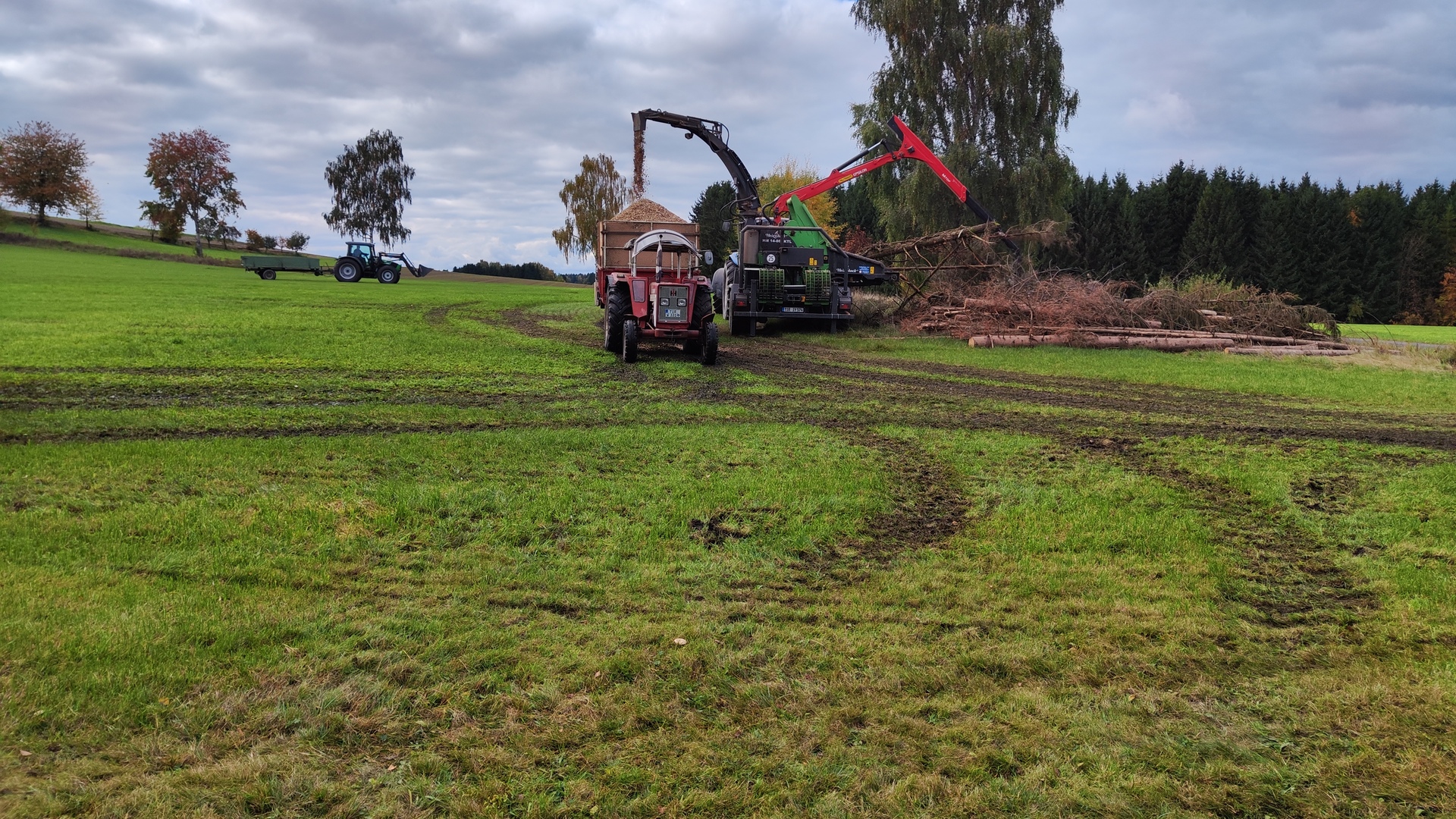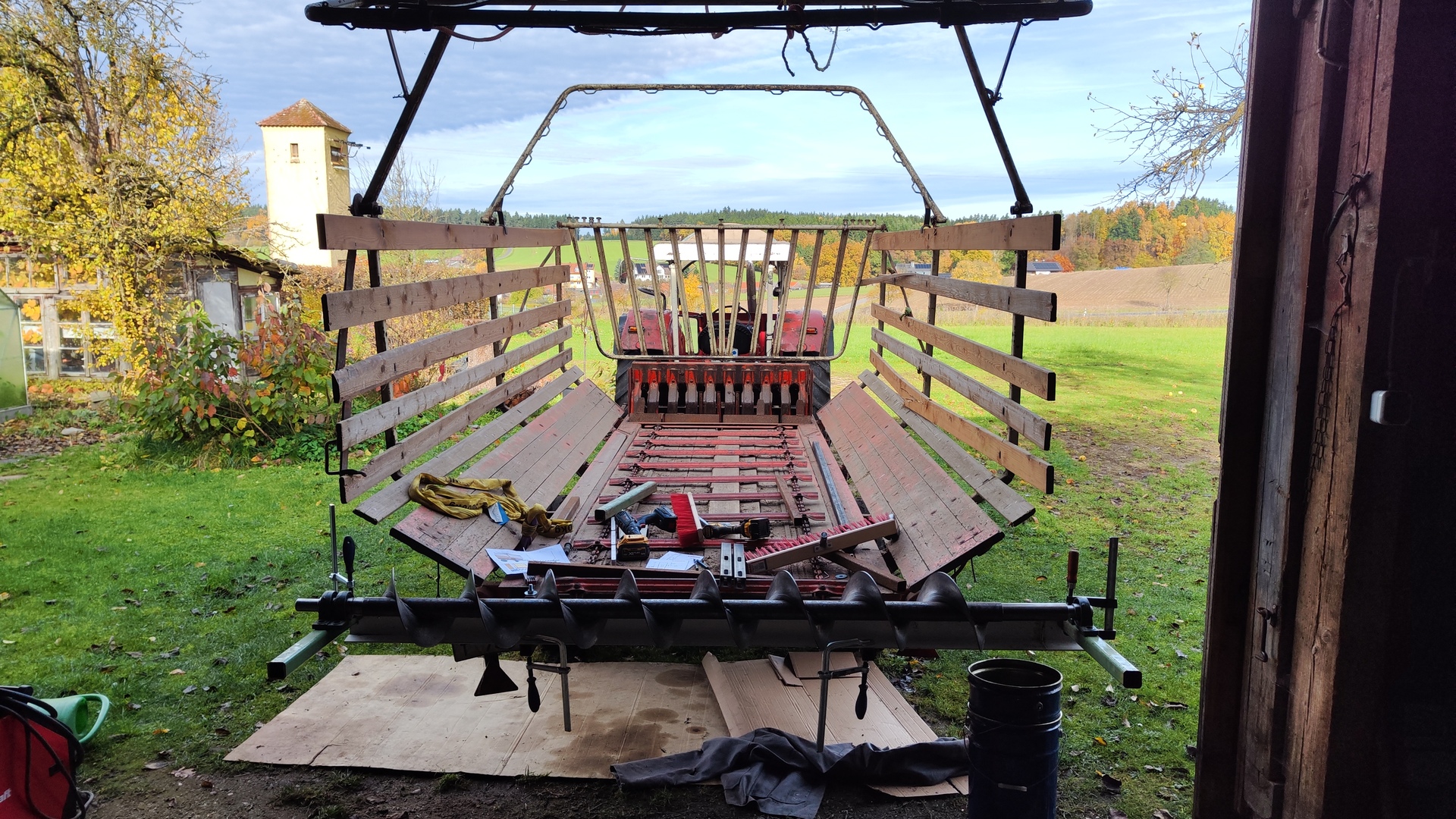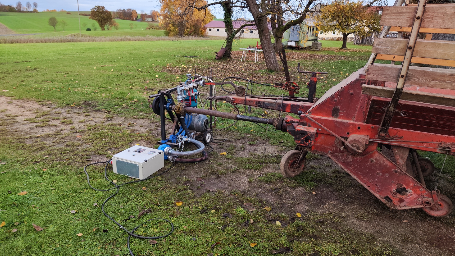 Retrofitting an old loader wagon so it fills buckets with wood-chips at the press of a button.