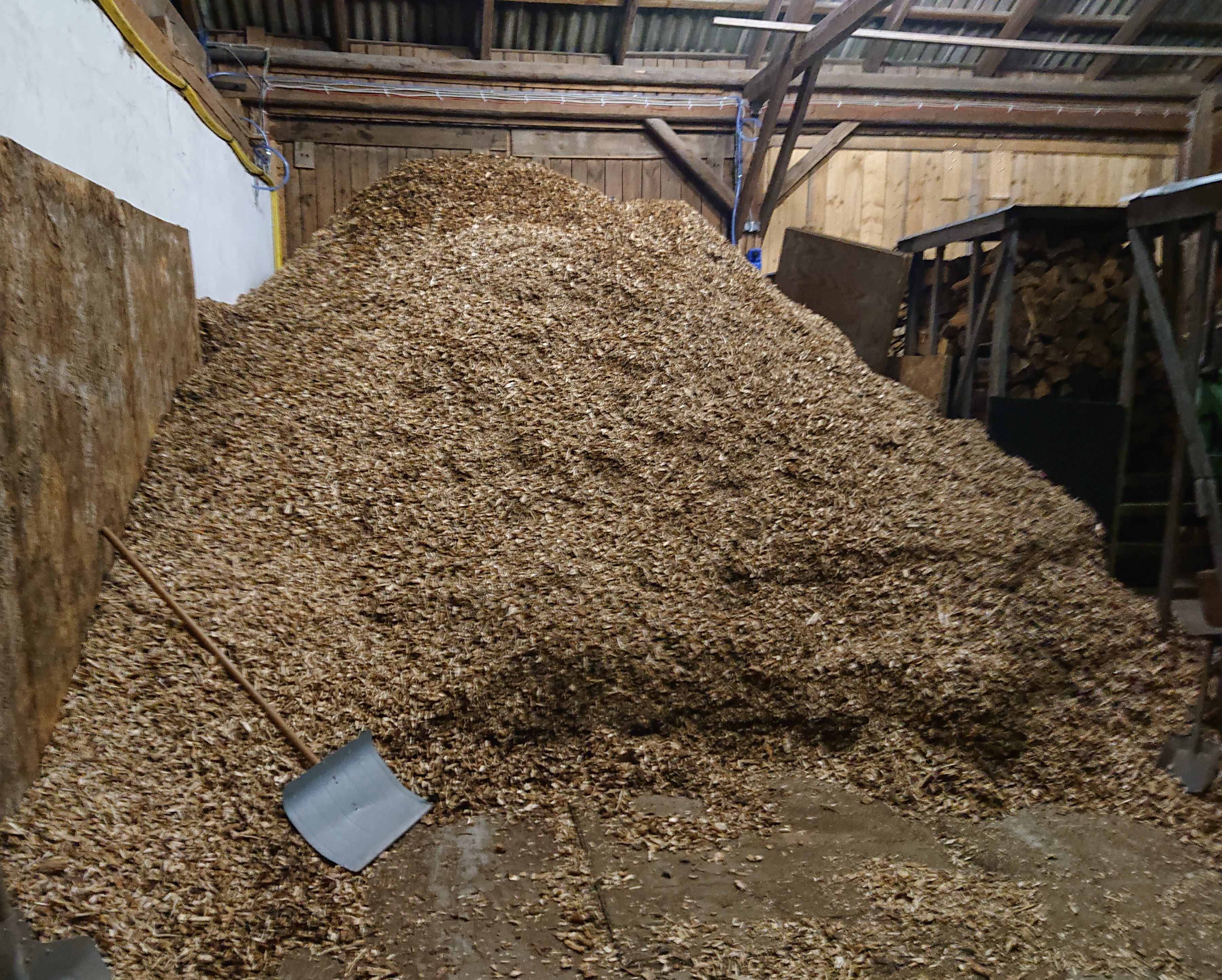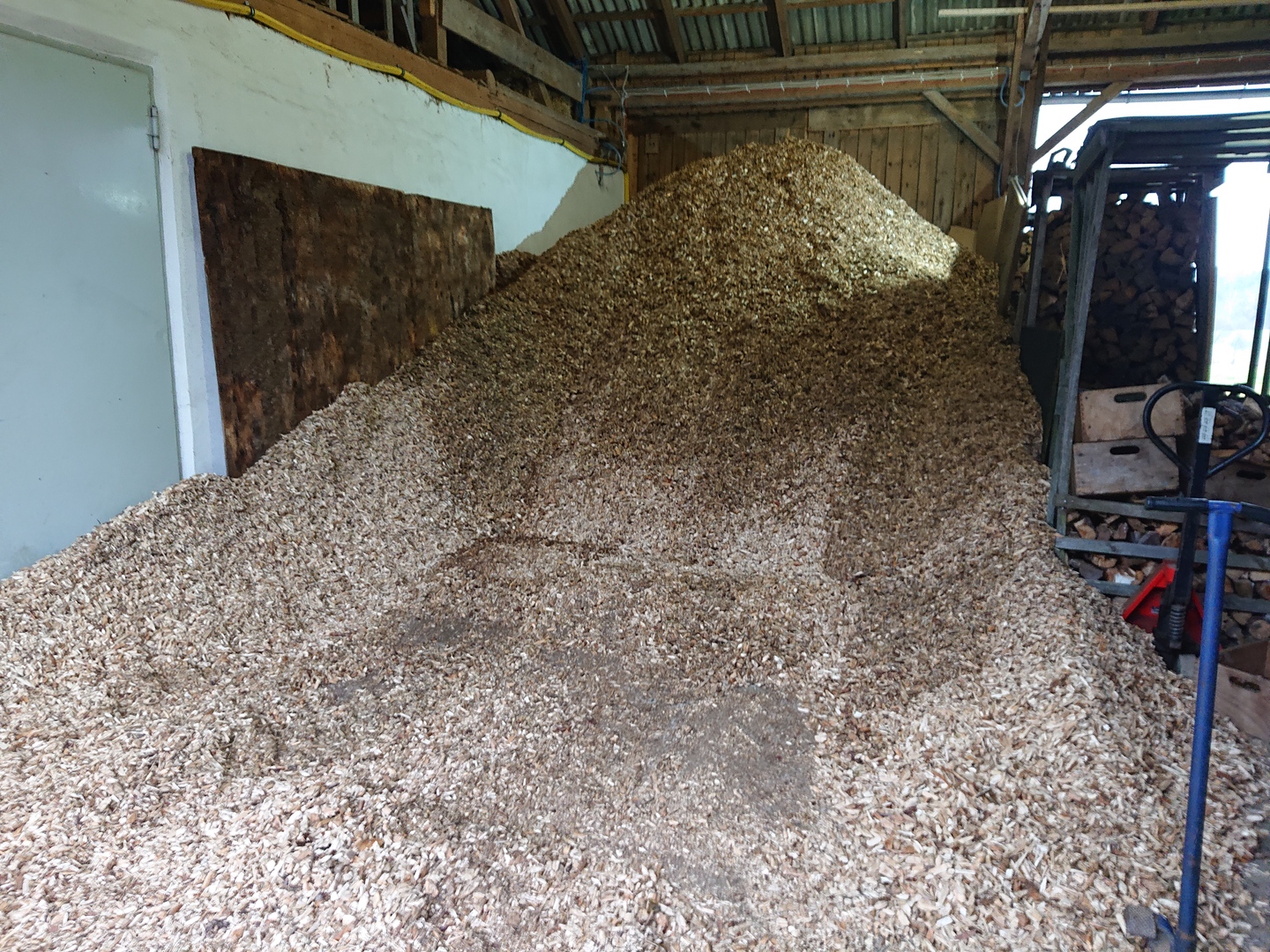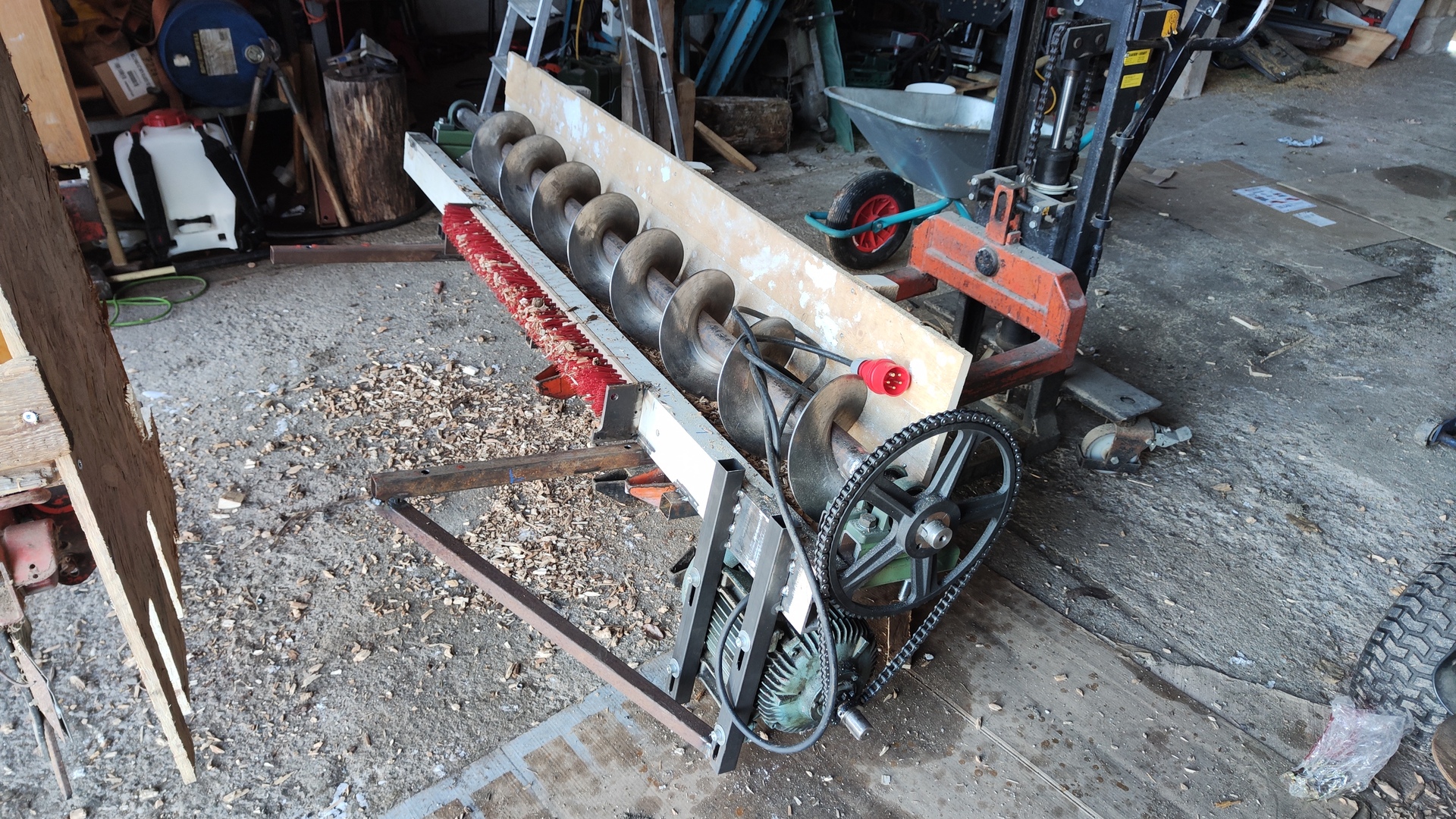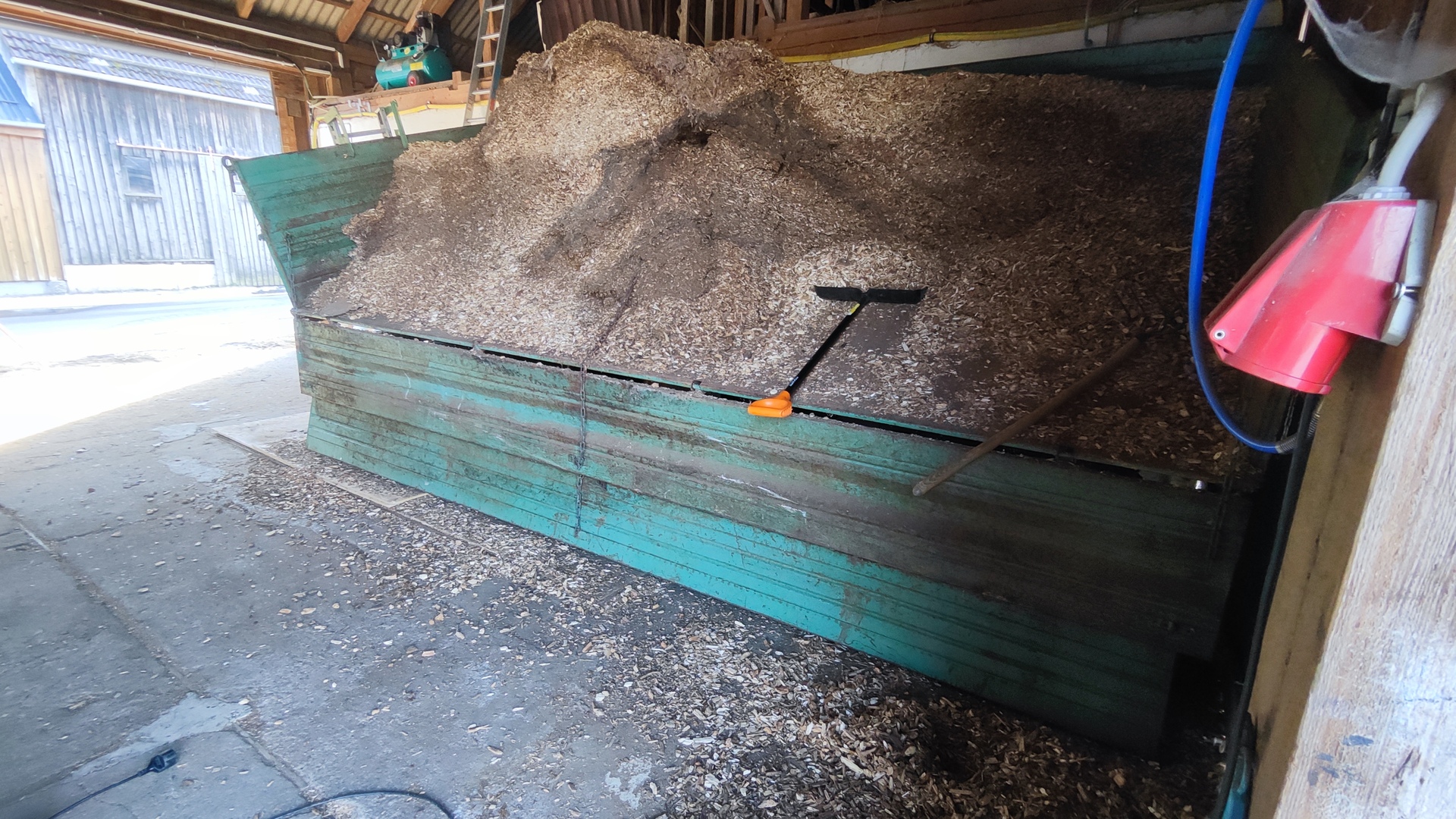 We don’t have a chip-fired heating system yet, but we still wanted to use some chips alongside firewood. The workaround was to dump chips on the floor and fill buckets by hand once a week (about ~25 buckets in one session). It worked, but only as a temporary workaround.