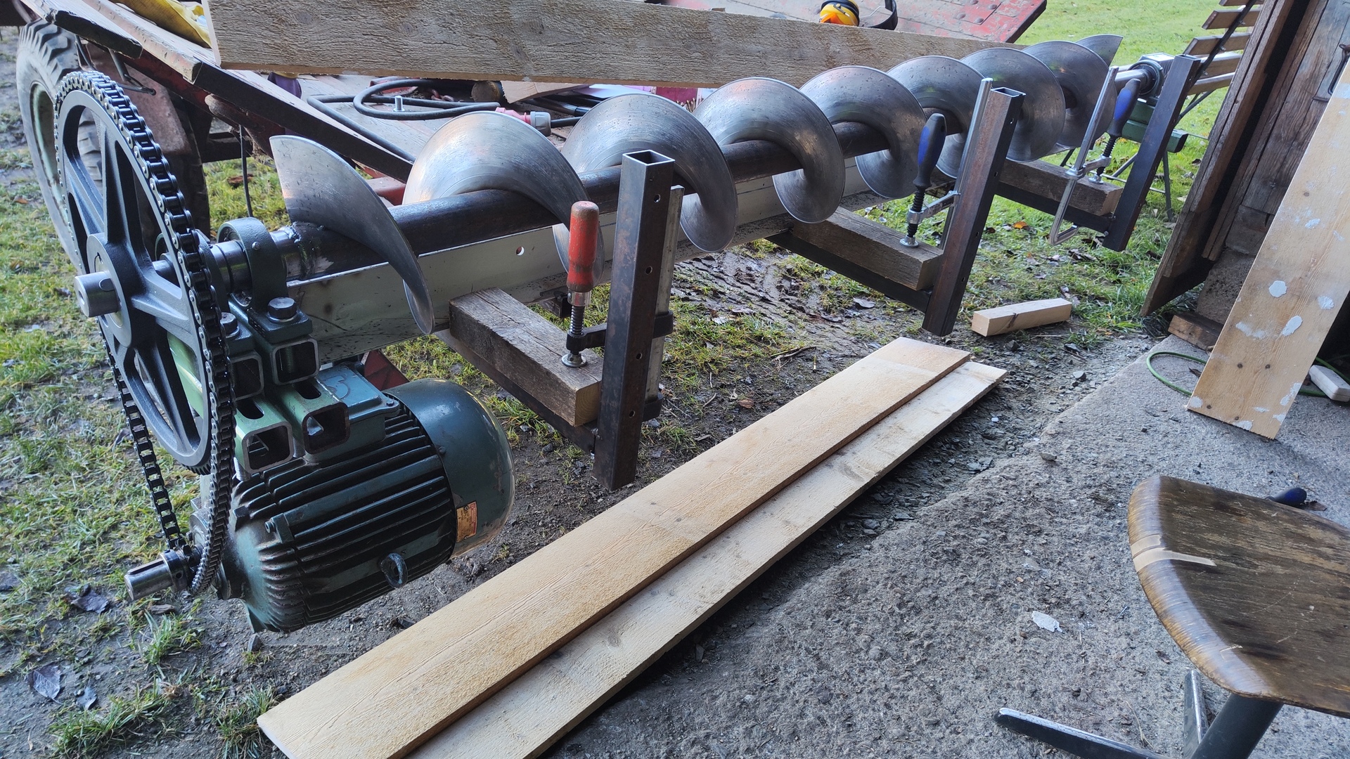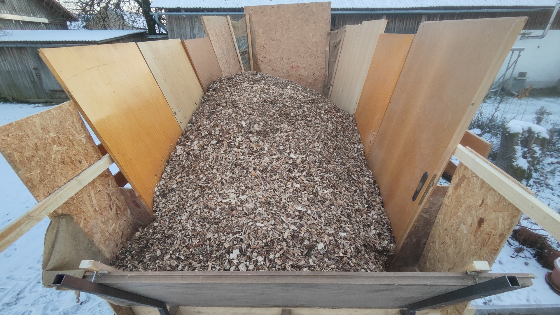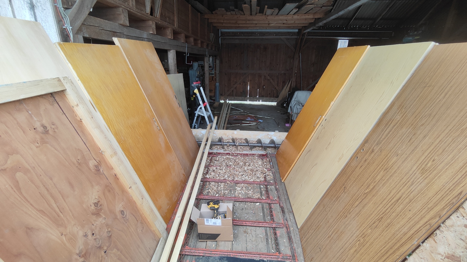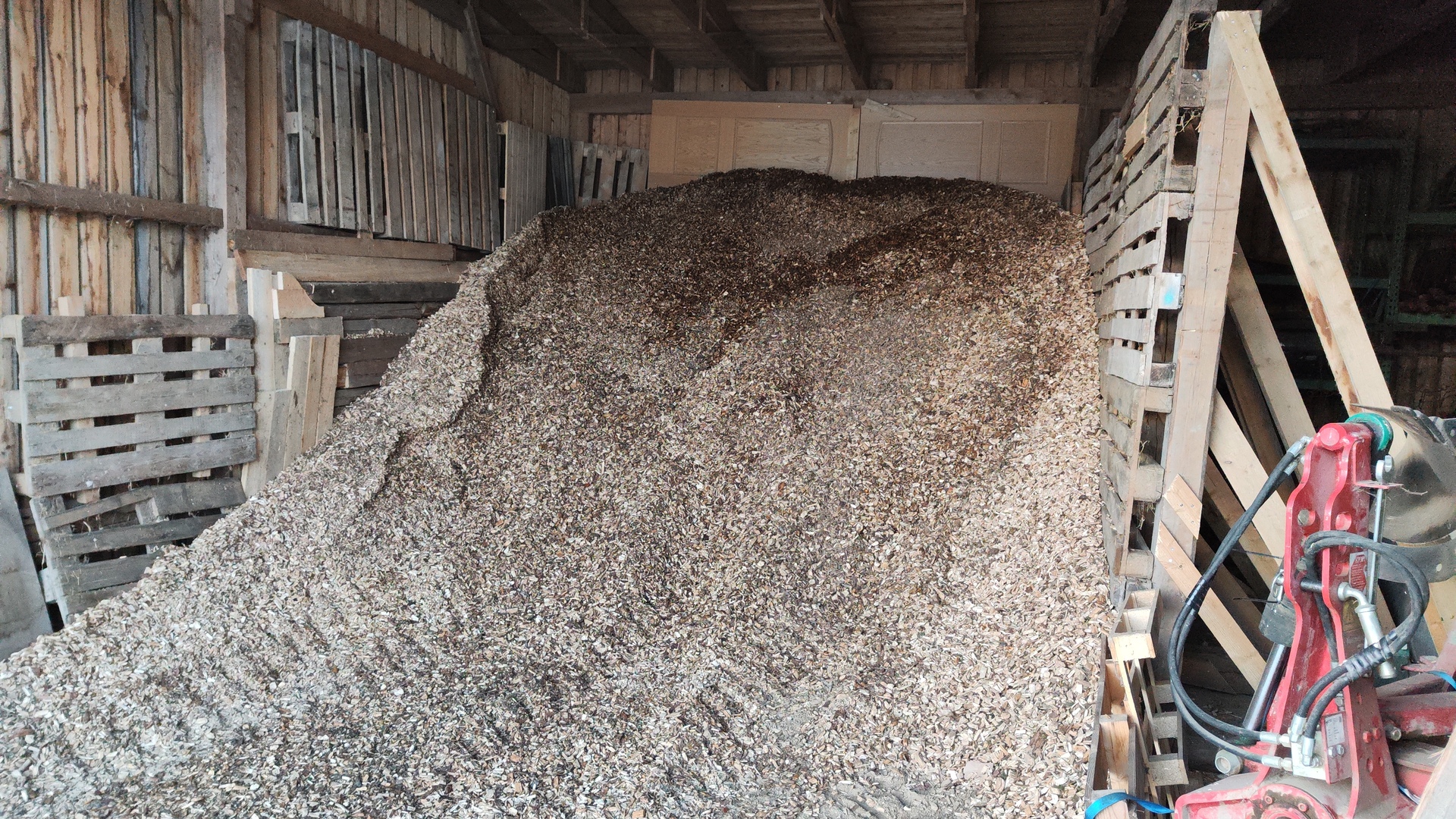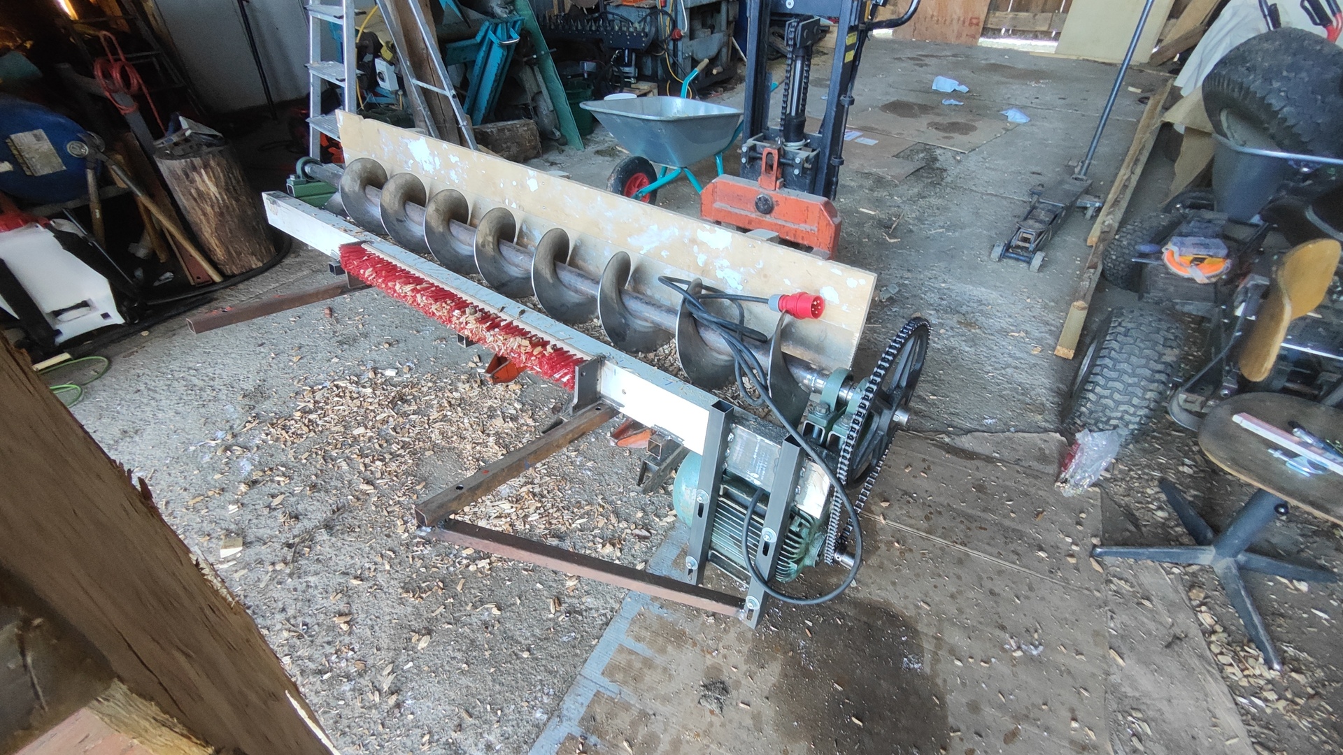 We don’t have a chip-fired heating system yet, but we still wanted to use some chips alongside firewood. The workaround was to dump chips on the floor and fill buckets by hand once a week (about ~25 buckets in one session). It worked, but only as a temporary workaround.