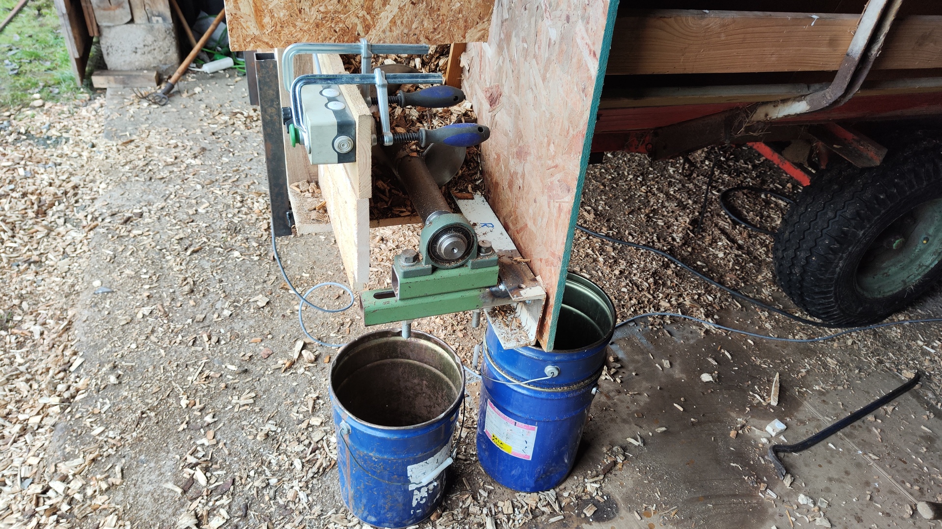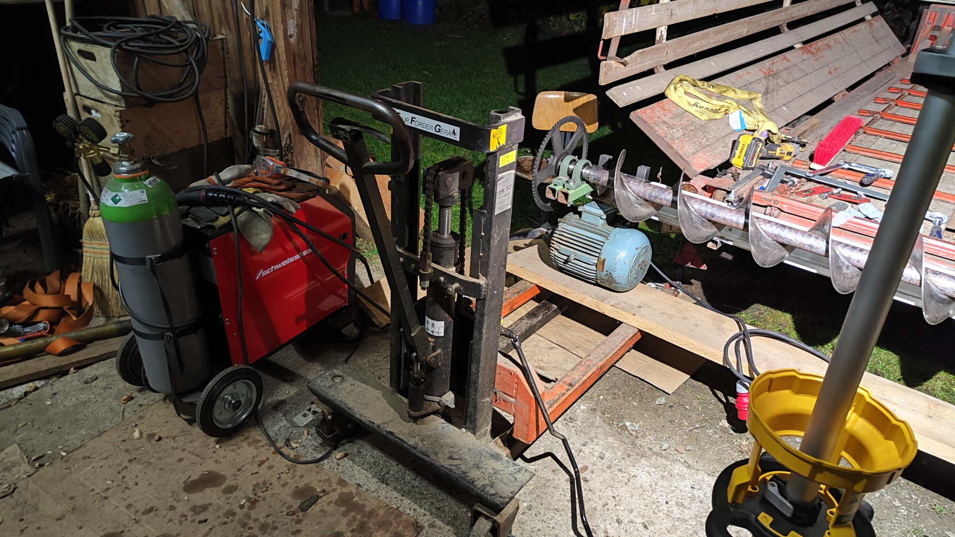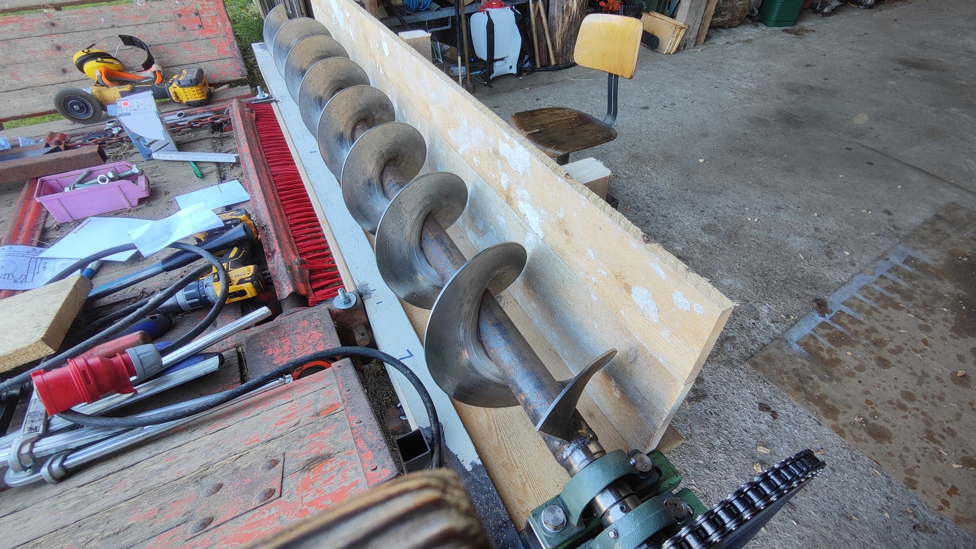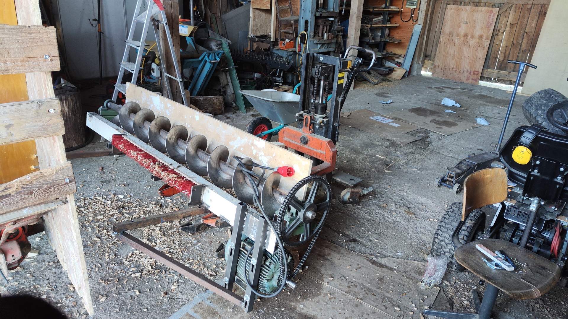 We don’t have a chip-fired heating system yet, but we still wanted to use some chips alongside firewood. The workaround was to dump chips on the floor and fill buckets by hand once a week (about ~25 buckets in one session). It worked, but only as a temporary workaround.