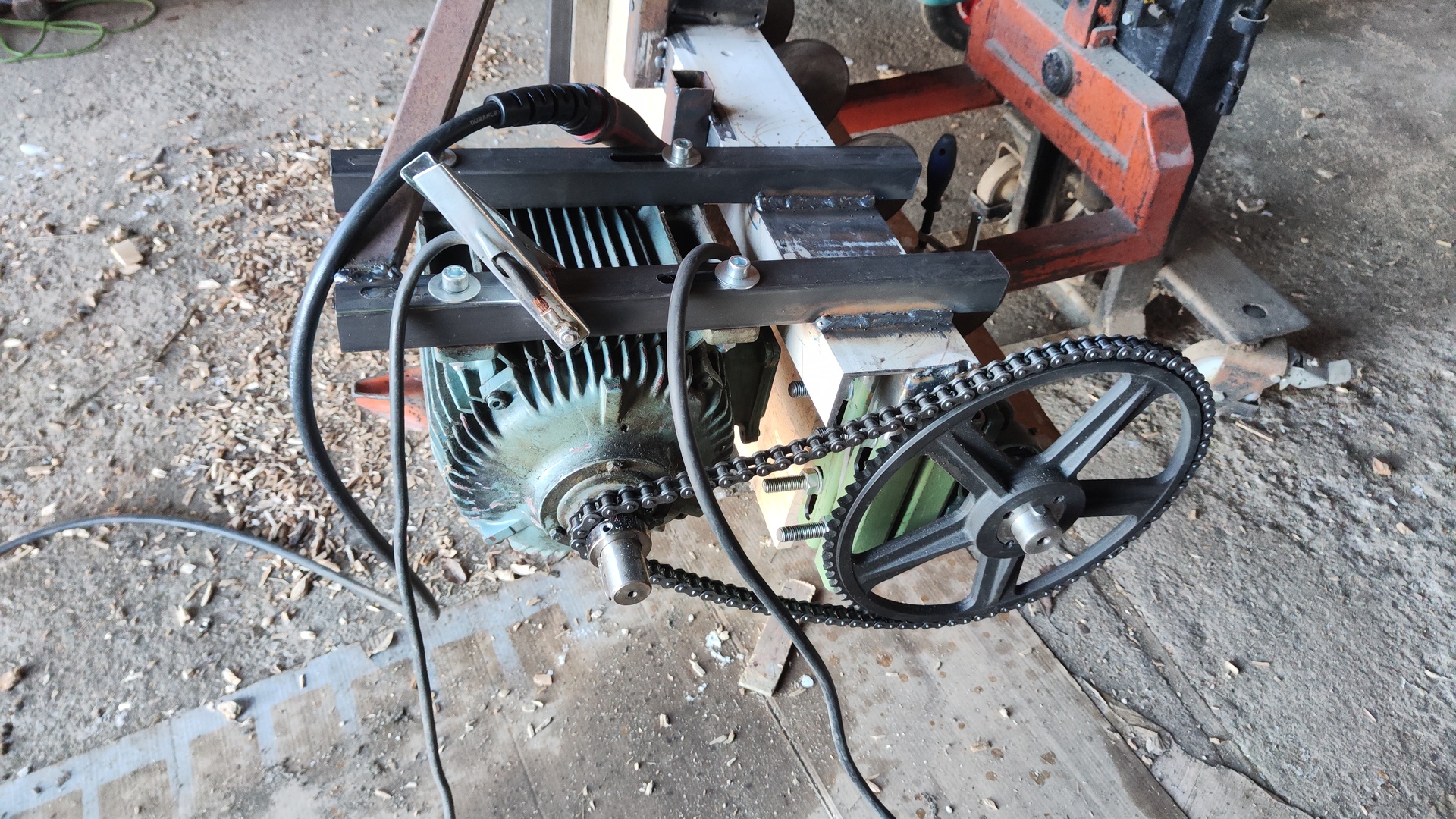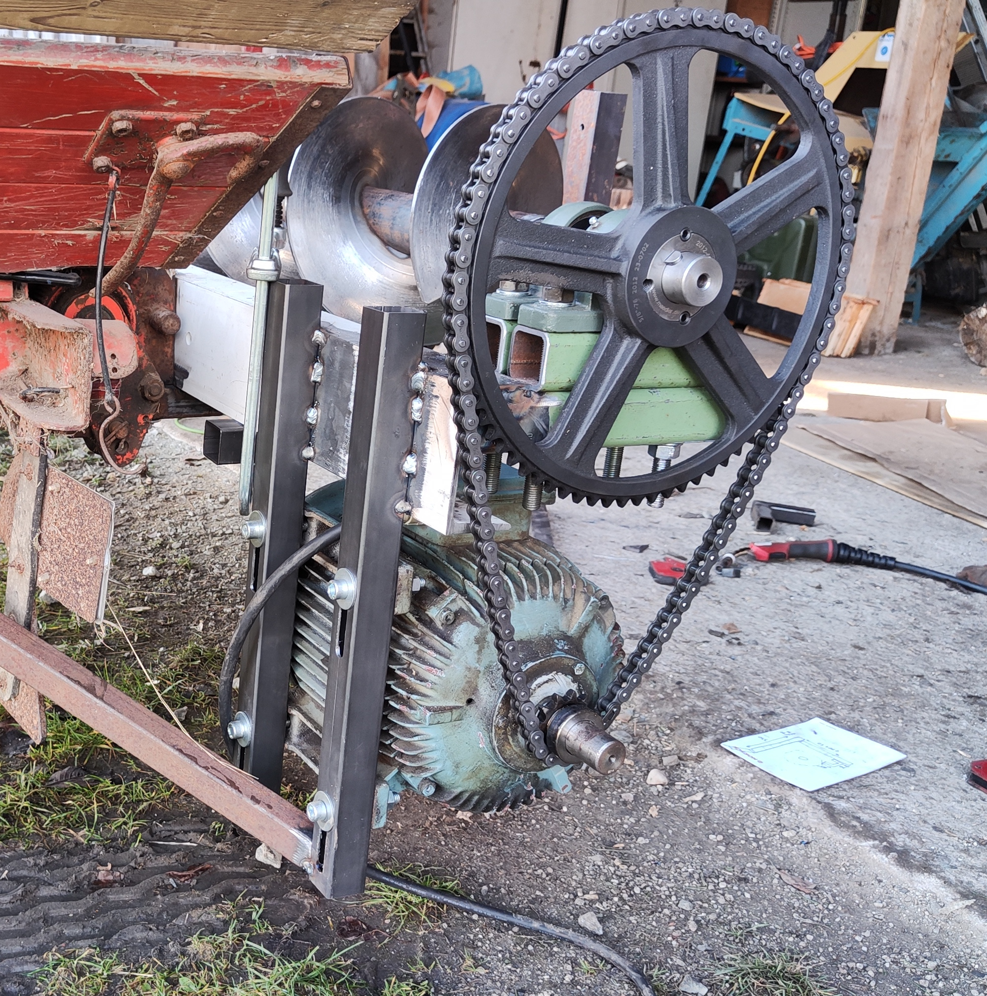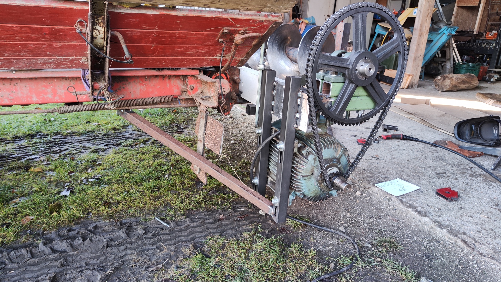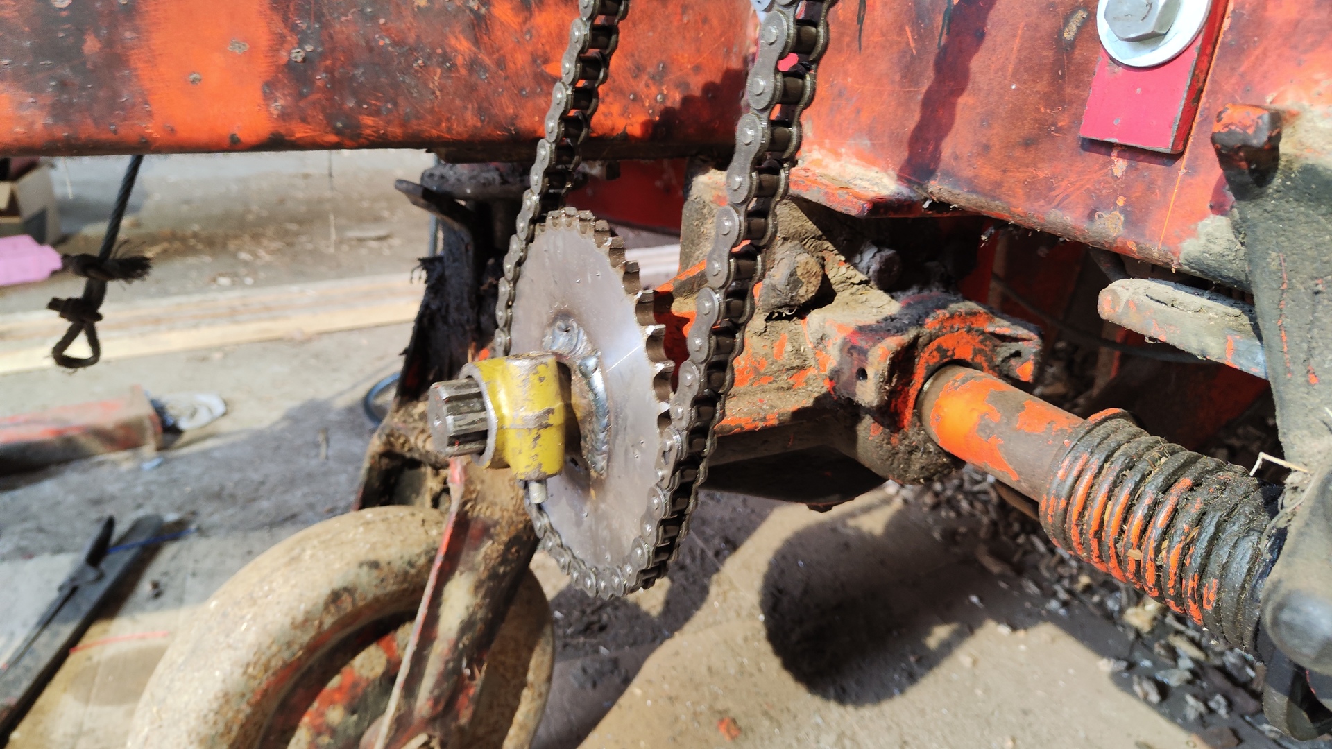 - Shafts: 32 mm motor, trailer PTO (custom adapter; chain blade on old PTO fork)