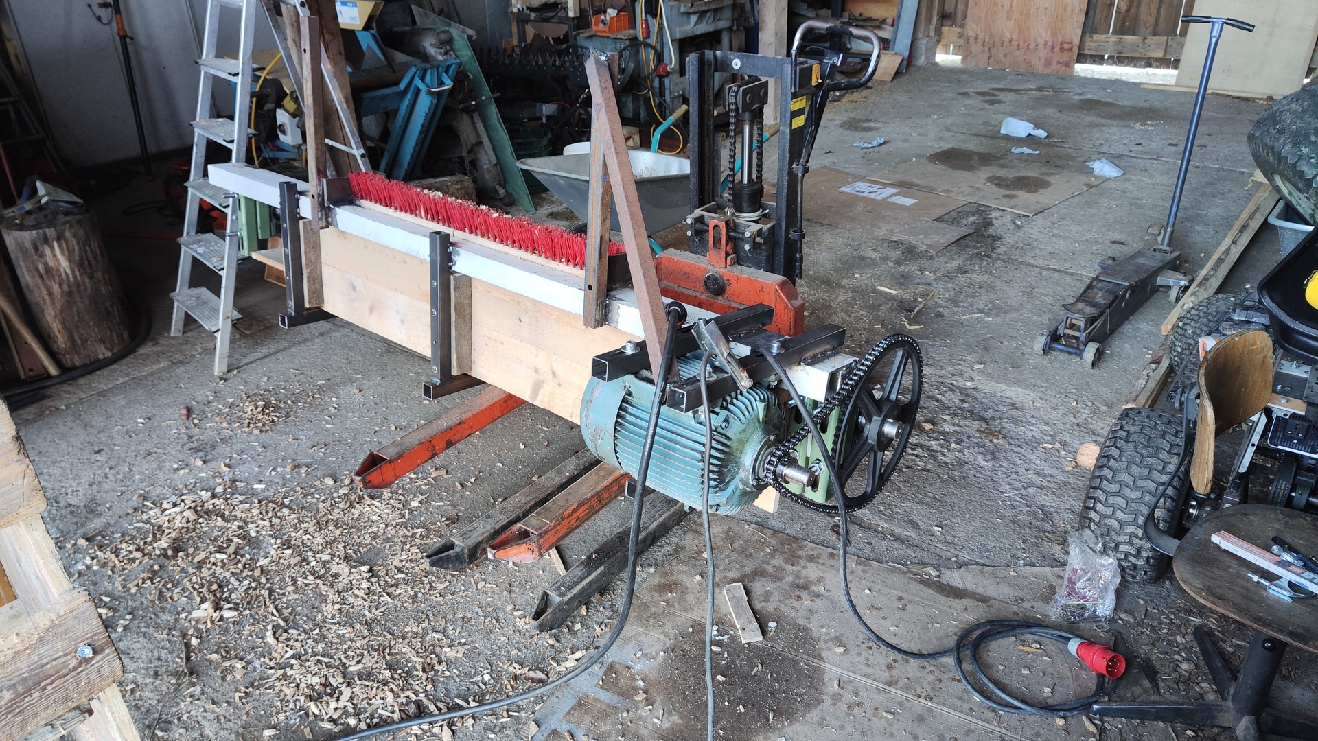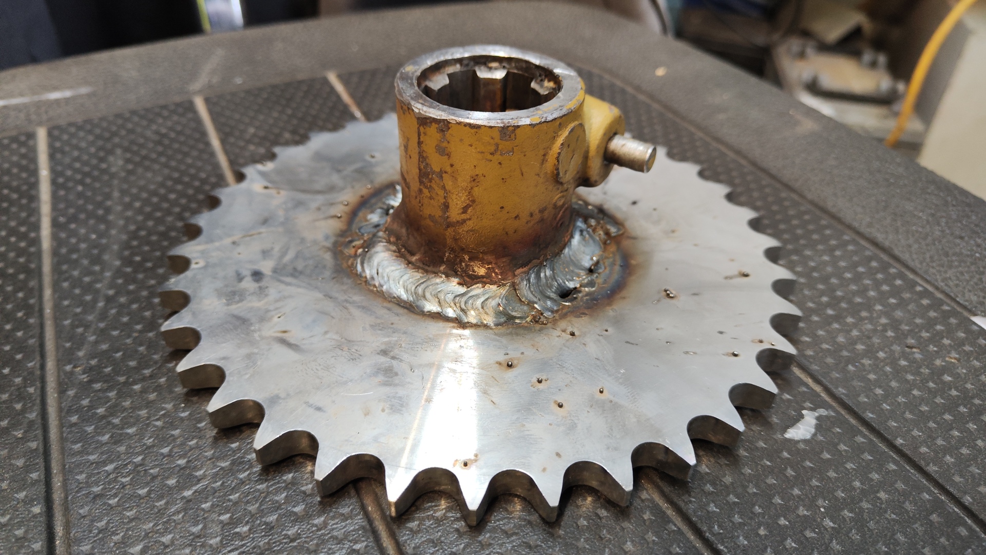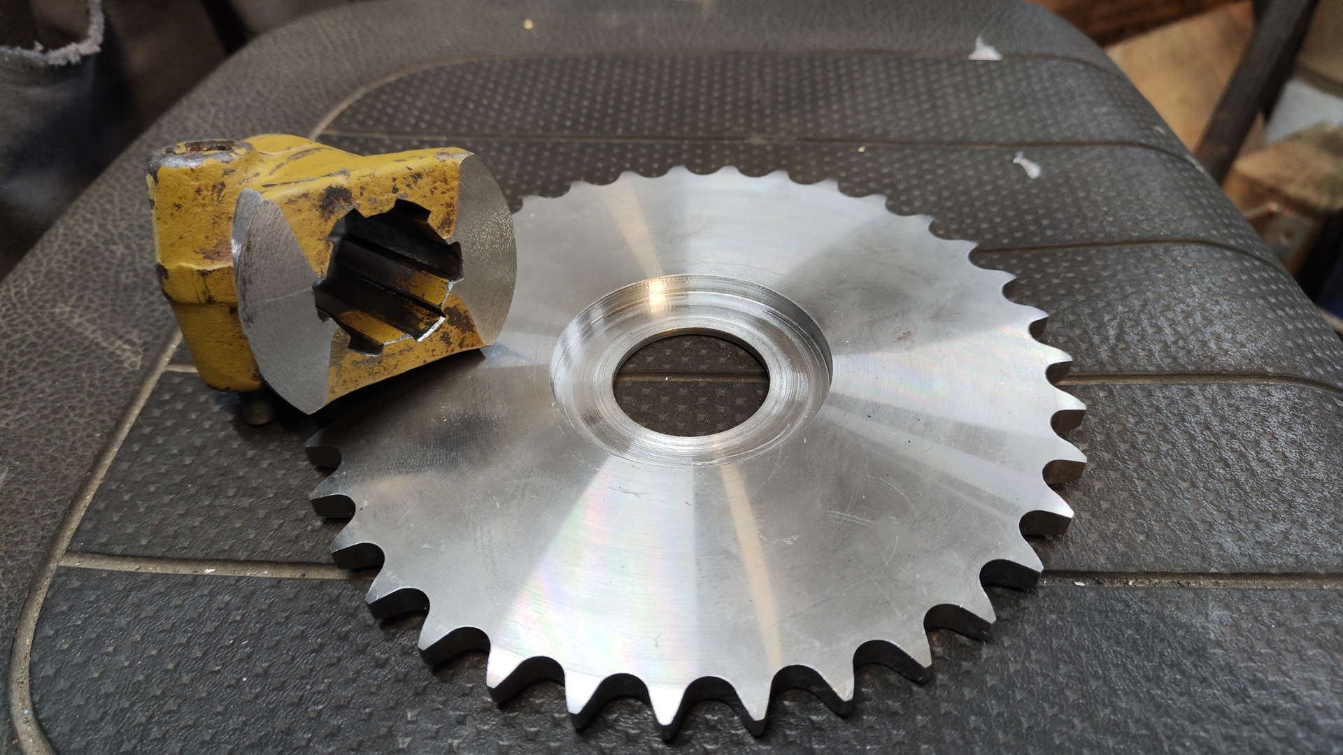 - Shafts: 32 mm motor, trailer PTO (custom adapter; chain blade on old PTO fork)