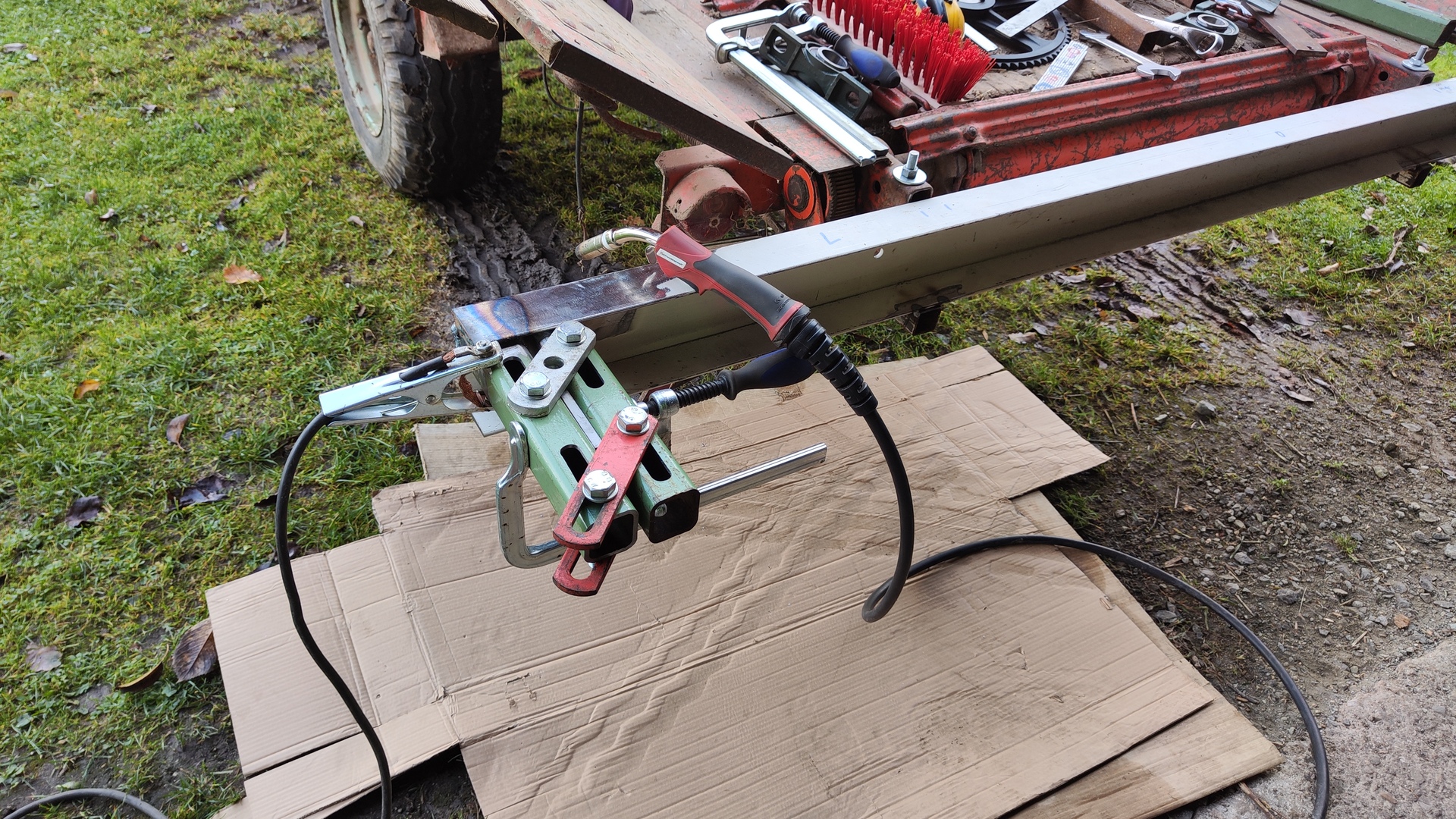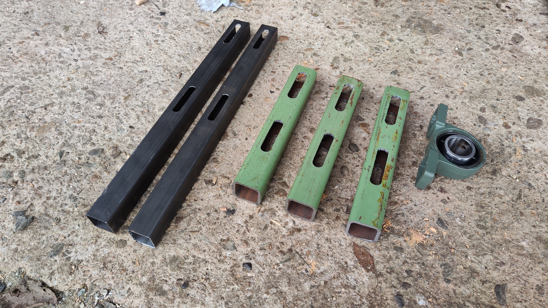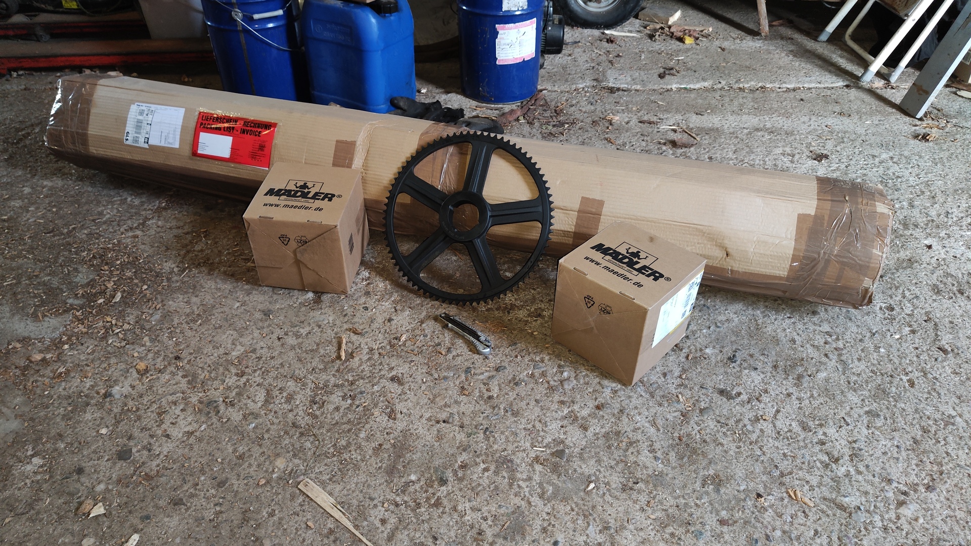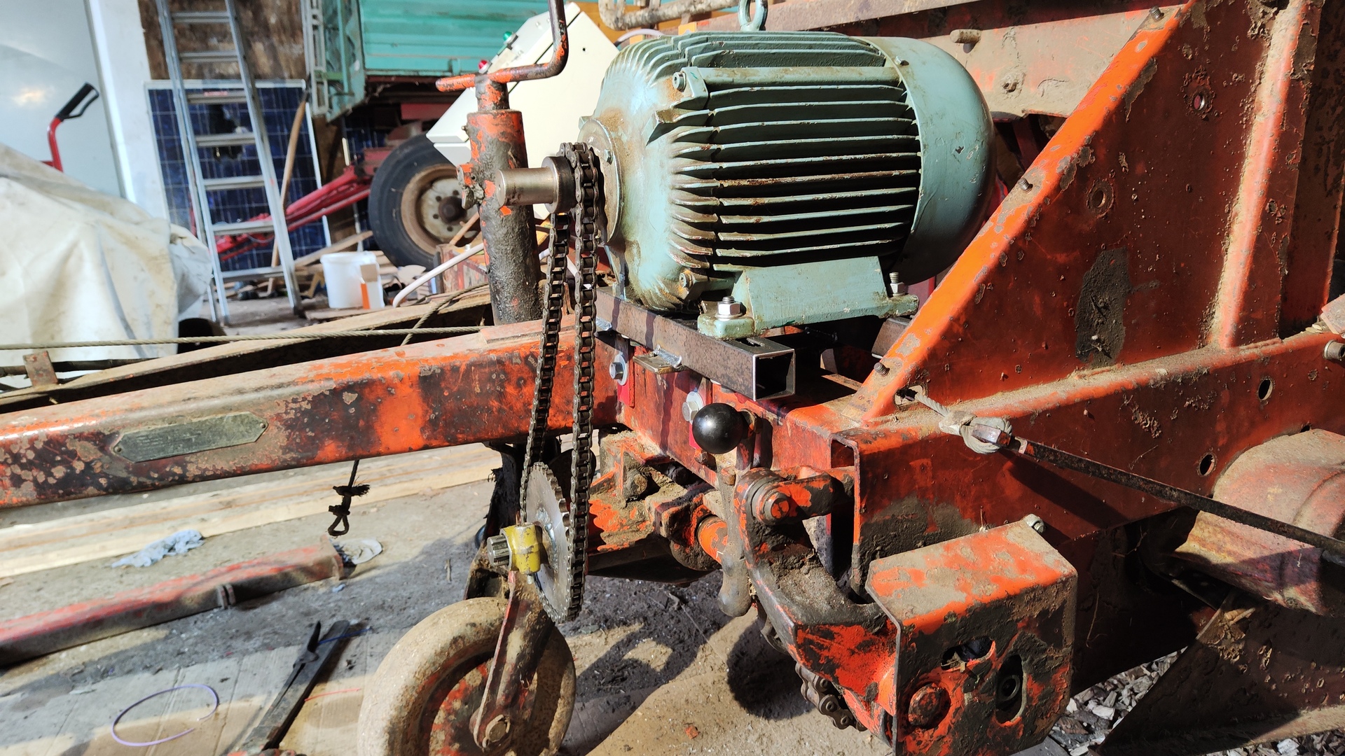 - Shafts: 32 mm motor, trailer PTO (custom adapter; chain blade on old PTO fork)