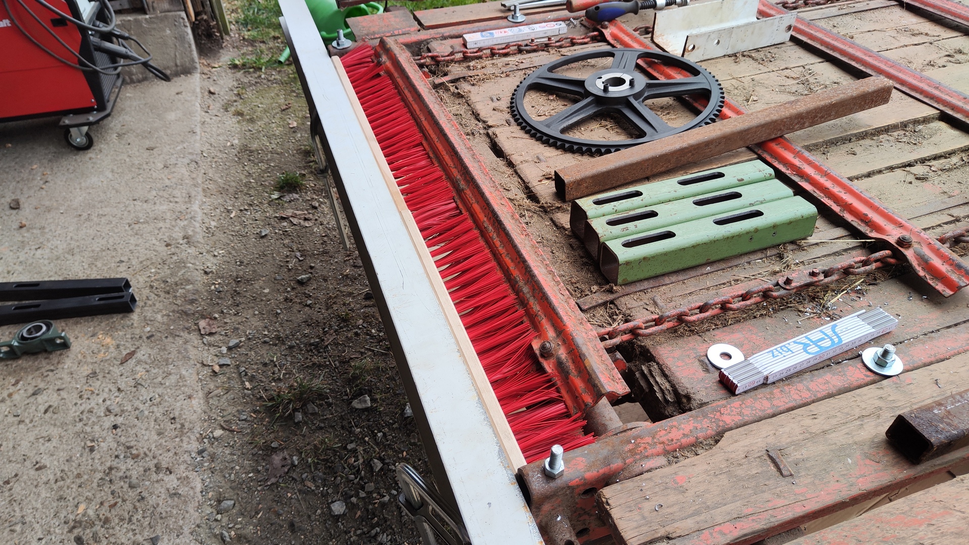 - 2× 60 cm red street broom brushes as rear scrapers/seals where the scraper bars pass